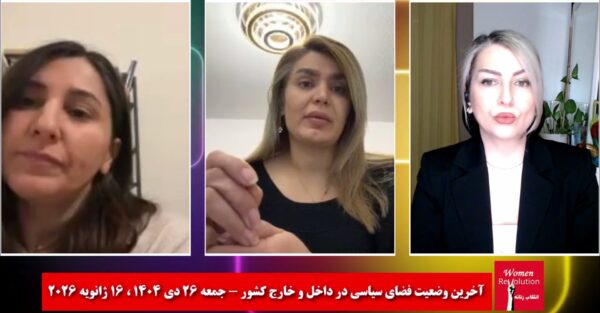 سخنرانی ها مصاحبه، روایت و گزارش مطالب همه ژانویه 16, 2026 لایو شبانه انقلاب زنانه؛ بیست و ششمین روز اعتراضات سراسری، دادخواهی کشته شدگانجمعه ۲۶ دي ۱۴۰۴ ، ۱۶ ژانويه ۲۰۲۶ شرکت کنندگان؛ کیمیا قربانی، آهنگساز و فعال سیاسی ریزان نوری، خاله دادخواه روبینا امینیانآخرین وضعیت بازداشت شدگان اعتراضات سراسریارائه دهنده؛ الهام فاضل عضو و فعال تشکل انقلاب زنانهتهیه کنندگان: شیرین شمس، کیان آذر Previous Post لایو شبانه انقلاب زنانه؛ احتمال بالای حمله نظامی، کارزار محاکمه مقامات جمهوری اسلامی