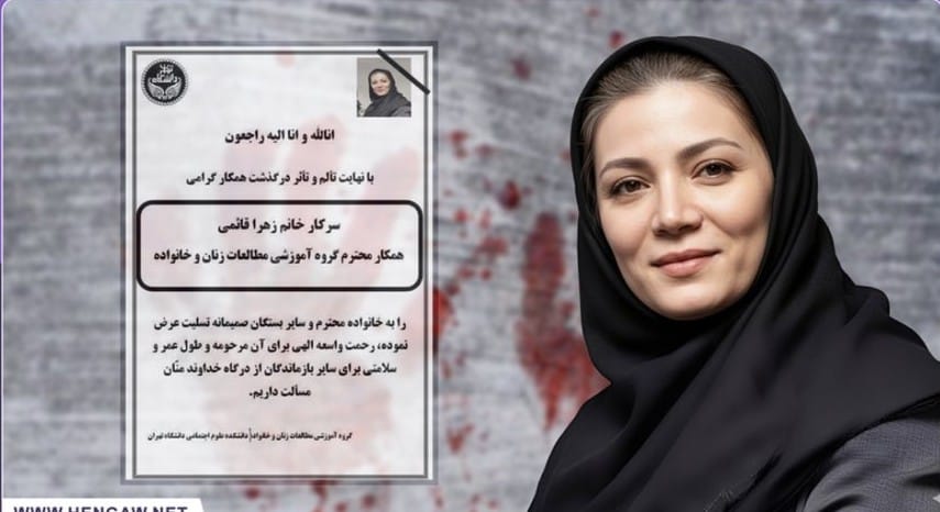 چرخه زنکُشی تحت حاکمیت ضدزن اسلامی همچنان میچرخد؛ قتل زهرا قائمی استاد دانشگاه بدست شوهرش